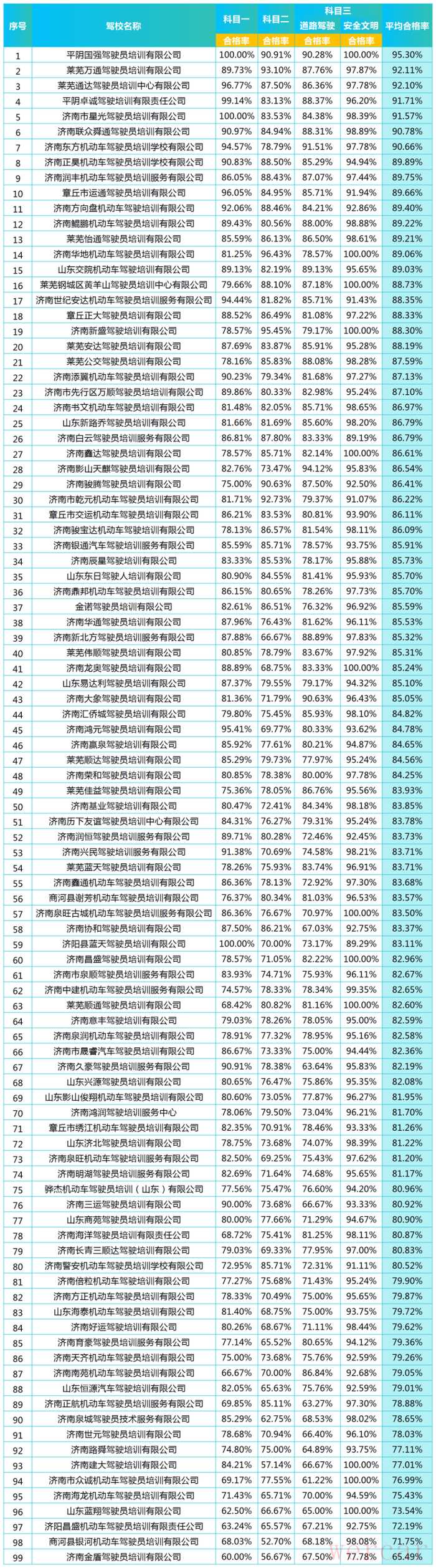 "事件:" 6月份济南驾校合格率排行榜公布。