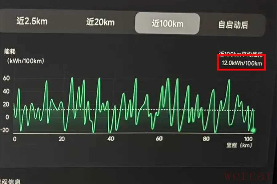 根据表显近百公里的平均电耗12.0千瓦时,由国标计算公式可以得出,按照燃料生命周期计算,当量汽油百公里消耗为2.88升;如果按照二氧化碳排放量计算,当量汽油百公里消耗为3.72升。
