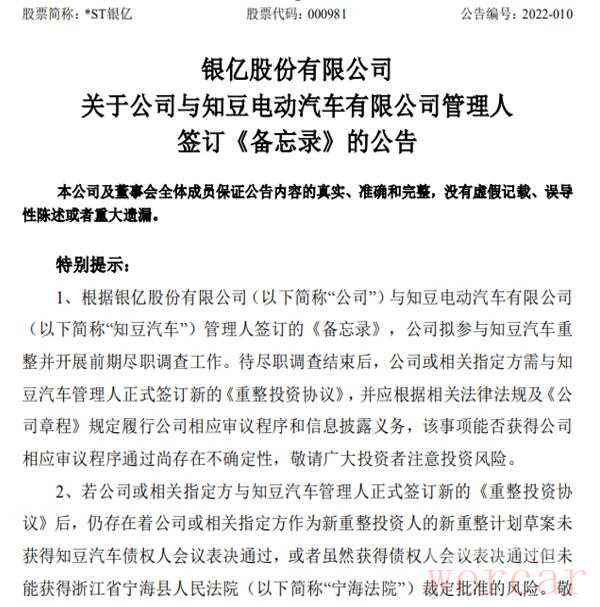 是的,大家没有看错,知豆竟然以如此的形式准备回归,而知豆也将*ST银亿一起带出了名。