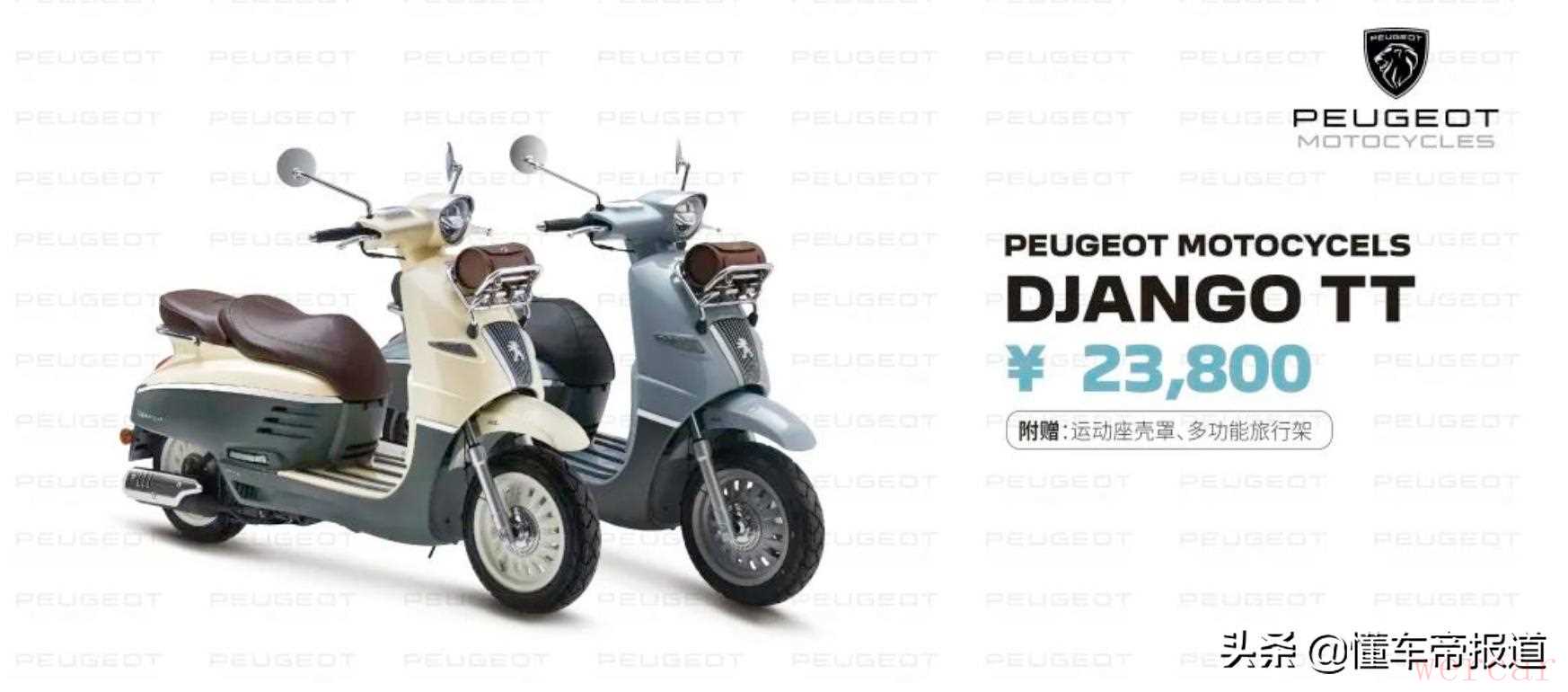 日前,懂车帝从标致摩托官方获悉,DJANGO姜戈TT正式上市。该车拥有多功能快拆旅行架、全地形轮胎等便于户外活动的细节升级,同时还有仙踪绿/海岸白、湖蓝/魅影灰两种外观颜色可选。新车售价23800元,首发200台,消费者可在标致摩托天猫旗舰店购买。