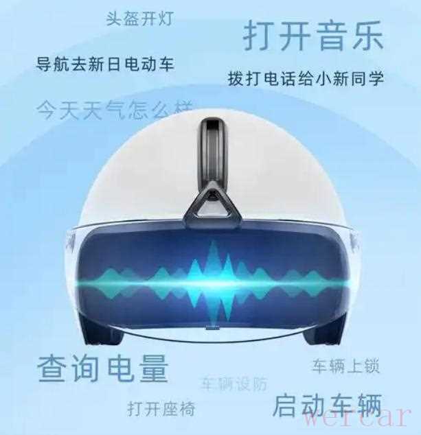 新日还有一个脱颖而出的技术亮点,它实现智能社交功能和AI语音头盔的结合,通过“小新同学”实现车辆控制,头盔灯光与转向同步,还有听歌、导航、查看天气,让出行安全和具有趣味性。