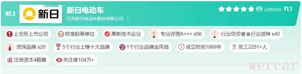 成立于1999年的新日,属于较早一批成立的电瓶车品牌,它曾经辉煌无限,在很长时间销量榜都是行业第一,所以,也是标准起草单位之一,并且成功上市,新日在5个排行榜都是榜上有名,包括电瓶车、电动自行车、折叠电动车、电摩等。