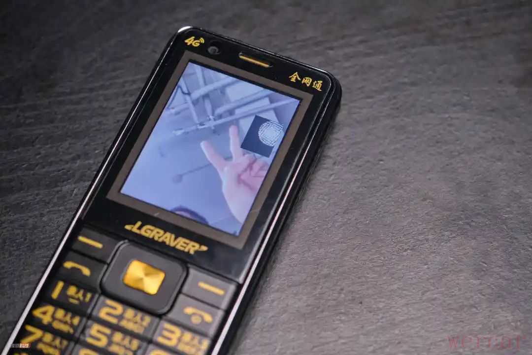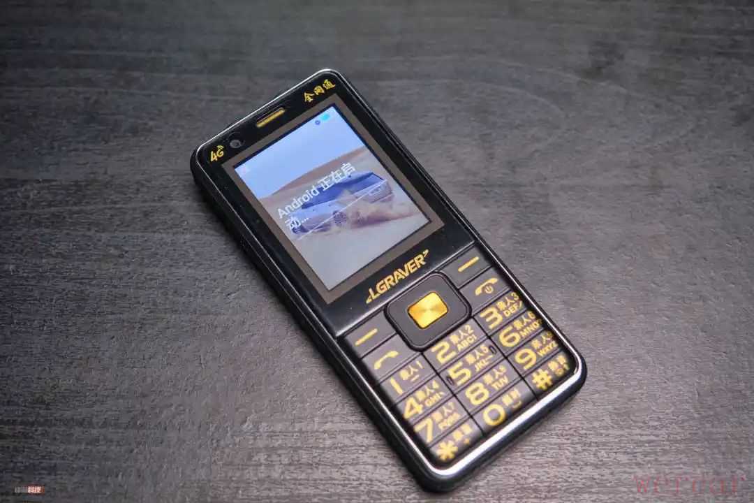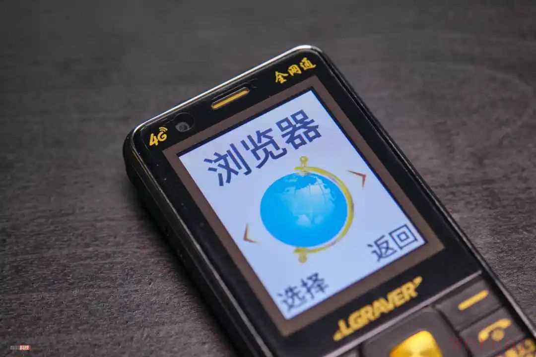 正面是一块 2.8 英寸的屏幕,上面还印有「4G」、「全网通」的标识。