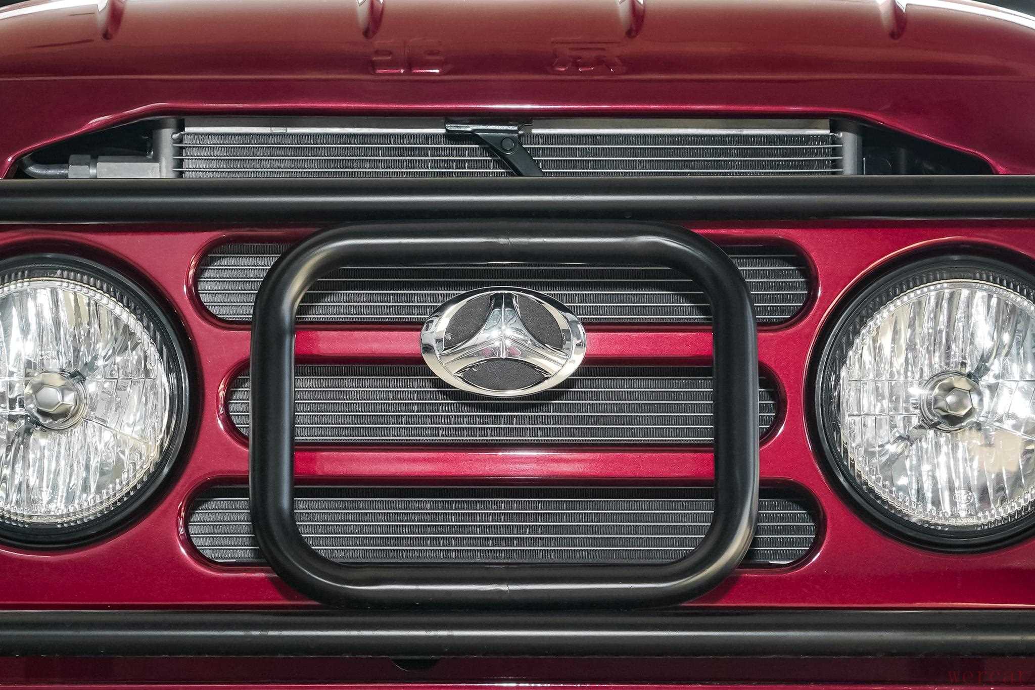 双圆形前大灯、三孔水箱散热口、车头防空灯,这些BJ 212的经典元素早已深入人心。当然,本次曝光车型在此基础之上,换装了一款造型十分接近Jeep牧马人车型的前保险杠,同时还包括裸露的红色前拖车钩和前绞盘。