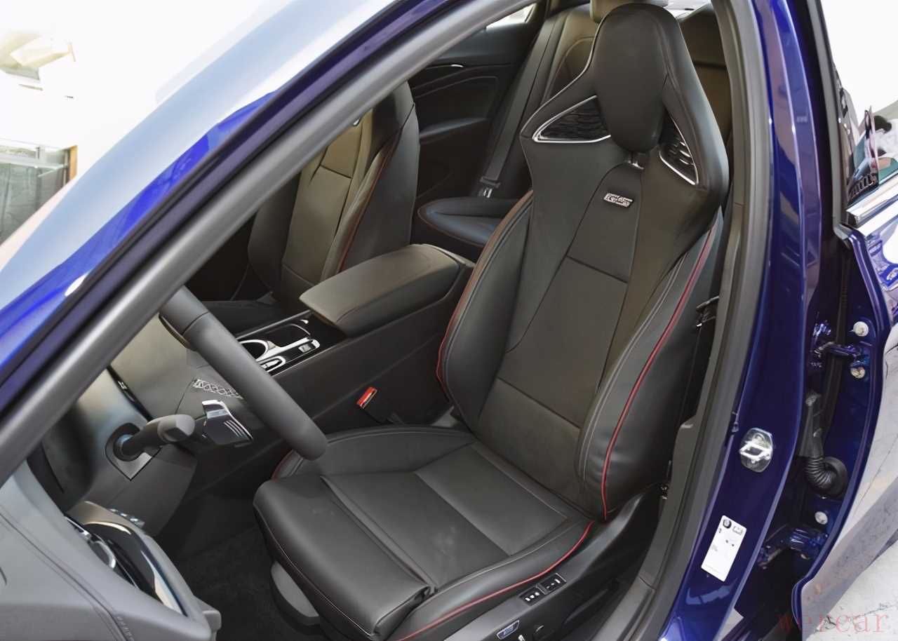 君威定位运动中级轿车,它的悬架调校是略微偏硬一点的,这也符合其市场定位,当你看到它2829mm的轴距时,是否感觉空间表现会非常宽敞,其实不然,像我这种身高1.78米的体验者,前排把座椅调整到最低位置,头部距离顶棚还有大约四指的余量,前排包裹性很到位,GS版本还有专业运动风格座椅,肩部、腰部支撑特别舒服。