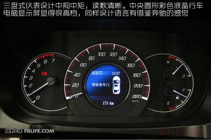 三盘仪表采用白色背光红色表尺,读书清晰又烘托出一定的运动氛围。速度表中央十圆形的行车电脑液晶显示屏。设计风格和W212奔驰E级有类似之处。看得出来北汽和奔驰的合作已经相当深入。