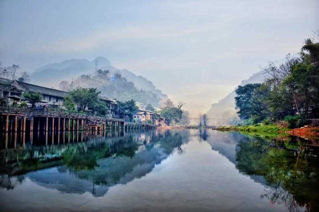 但又和许多知名古镇不一样,它依山临水,既有川西韵味吊脚楼,又如穿越到江南烟雨中。