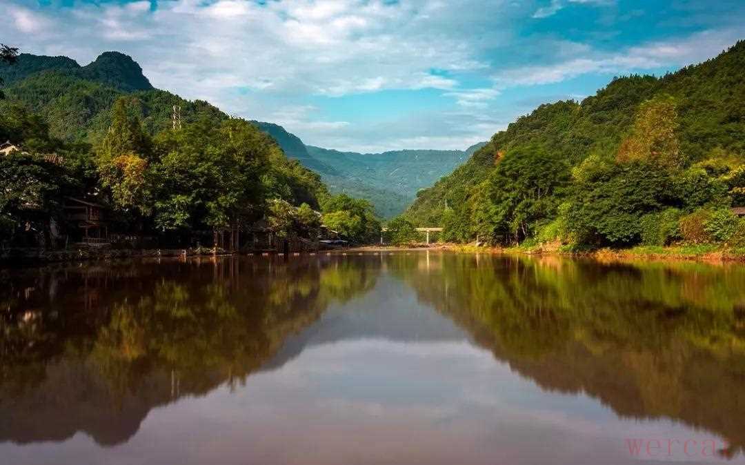 近可观,沿河两岸古树成荫,河水波光潋滟,游鱼穿梭。远可眺,八面山耸峙逶迤,五凤山苍翠欲滴,柏木岗林海茫茫。