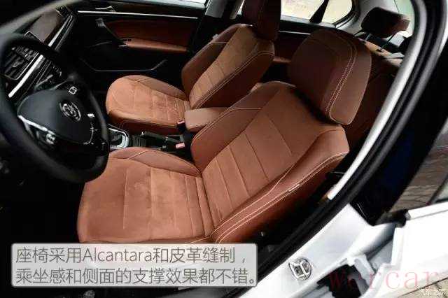 两侧皮革打孔设计的皮革座椅包裹性非常好,前排的中央扶手可以向前滑动并翘起,非常实用。后排的空间表现也可以说是中规中矩。