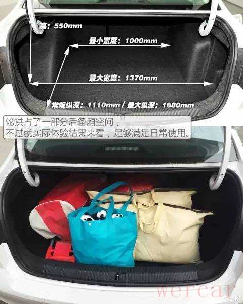 全新宝来的储物空间非常丰富,后备箱的容积也只能说是中规中矩,座椅支持4/6放倒,能满足大多数的日常家用。