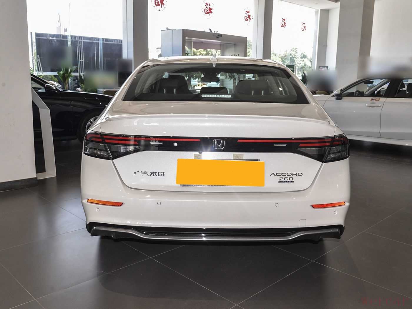 车身侧面,溜背式造型是雅阁的一大亮点,流畅的车顶线条从B柱开始缓缓下滑,与车尾自然衔接,营造出轿跑般的动感姿态。车身侧面线条简洁有力,搭配19寸五辐式轮毂,进一步提升了运动感。整个车身看起来,有几分奥迪A7的身影。车尾贯穿式的尾灯造型与前大灯相呼应,微微上翘的小鸭尾设计,为车尾增添了一丝活力。