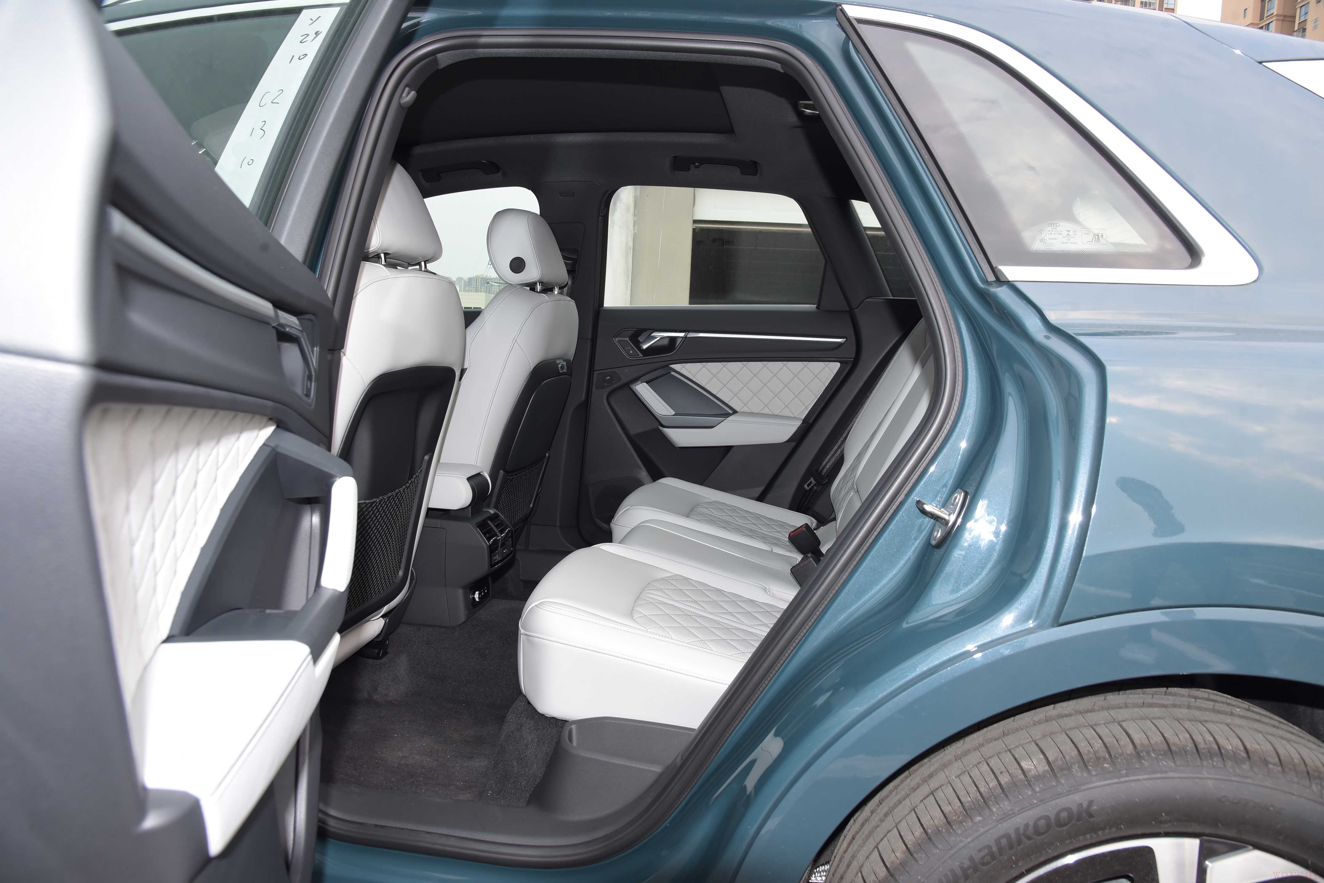 奥迪Q3采用翻毛皮材质座椅,这套座椅整体比较宽大且前排的包裹性不错。把前排座椅调整到适合我的坐姿,小编身高173cm,体重56kg,前排头部空间为1拳零3指。接下来保持前排座椅位置不变进入到大家最关心的后排,后排腿部空间为1拳零4指,后排头部空间为1拳整。最后打开后备厢,整个空间比较大且后排座椅支持40:60比例放倒,这台车的车内空间就日常代步而言够用了。