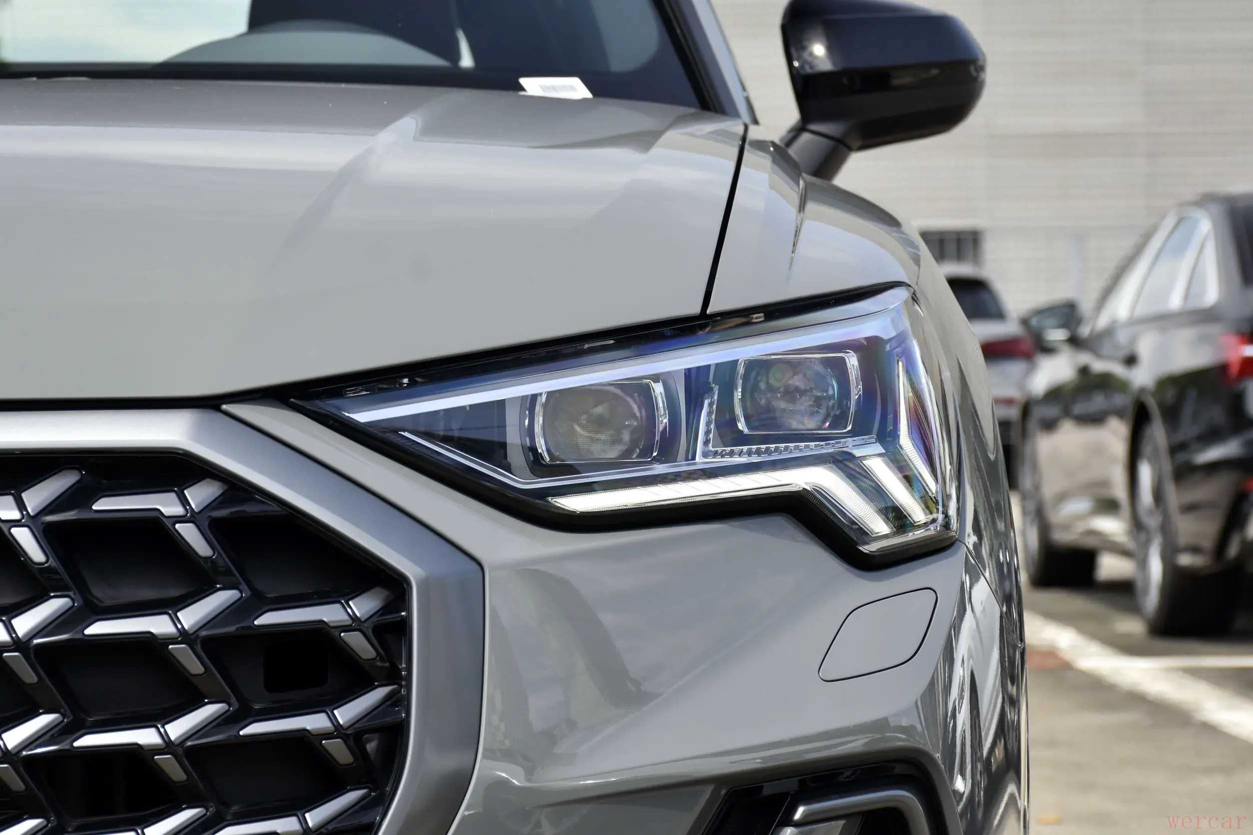 "细节处理:" 奥迪的精致感在Q3上也能体现。无论是贯穿式的LED灯带(日间行车灯和尾灯),还是标志性的六边形中网(尺寸根据配置和版本会有所调整),都营造出不错的豪华氛围和辨识度。