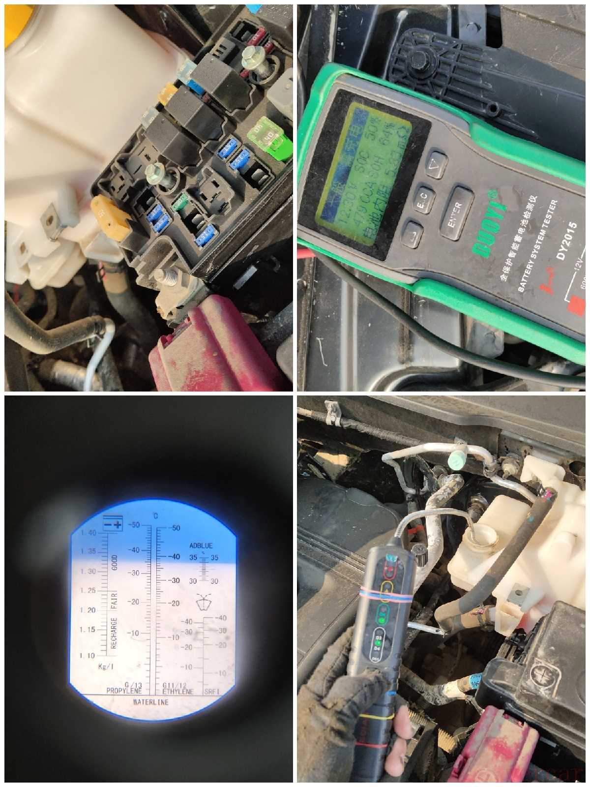 电瓶电量有点不足,应该是停放时间过长导致,防冻液冰点在正常范围,刹车油的含水量也没有超标,整车油水没什么问题,可见车辆保养的状态还是不错的!
