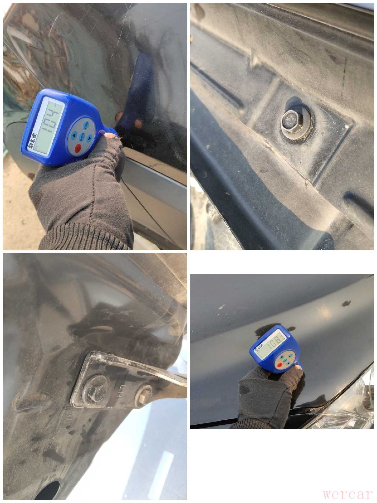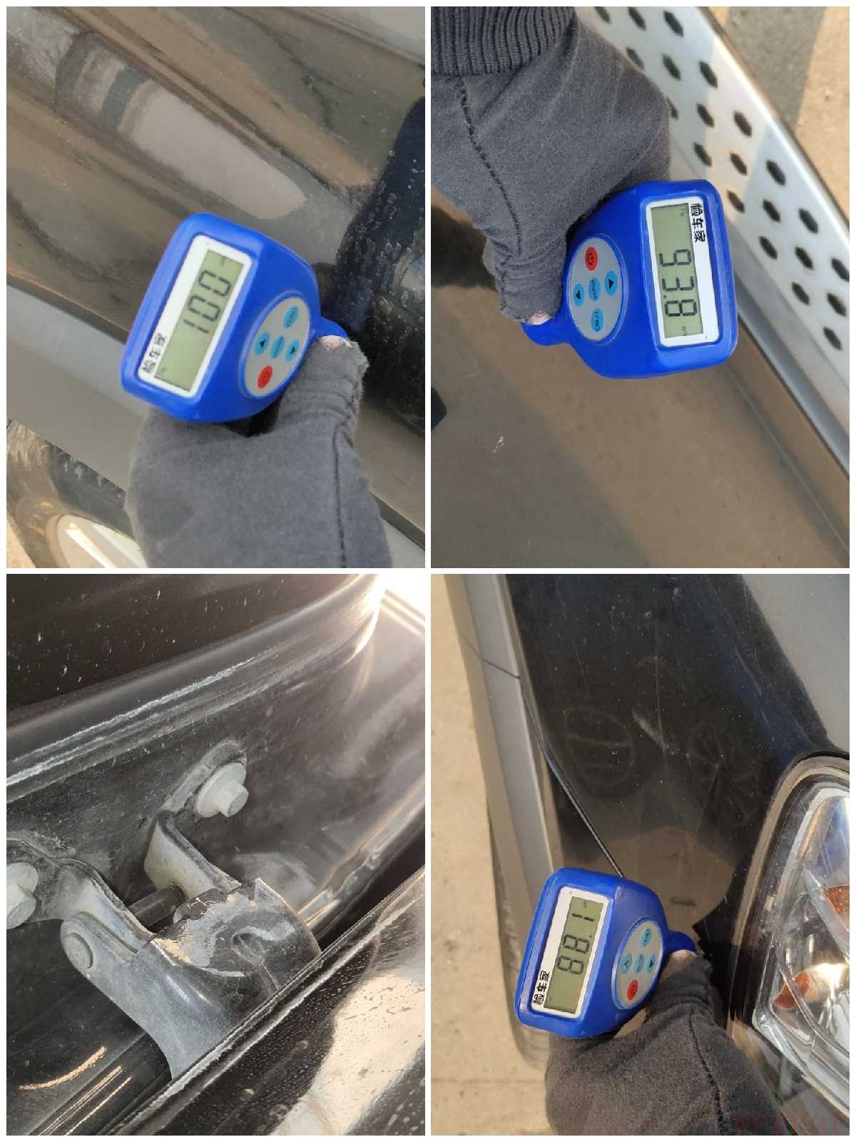 右面一侧也是没有任何的补漆和拆卸痕迹!整个车身外观检测完毕,除了前后有补漆修复外,其它地方都是原车漆的状态,就是划痕有点多!