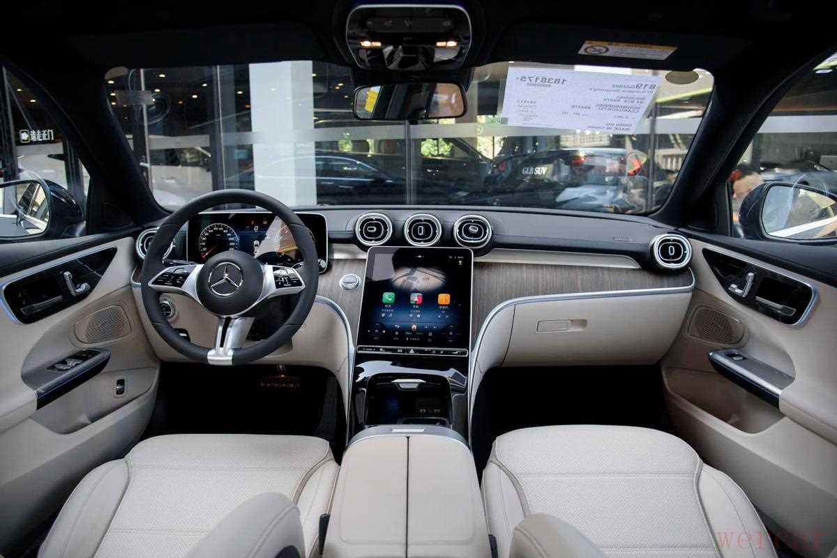 奔驰C级车内整体风格较为温馨,圆形的方向盘设计前方还有电子怀挡和悬浮式液晶仪表。木纹饰板装点的中控台上方带有三个圆形空调出风口,采用竖向的中控大屏设计。