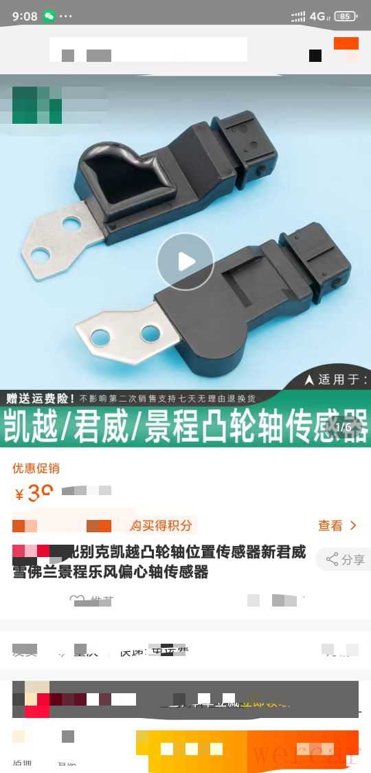 从网上买了凸轮轴位置传感器,大约40不到,原装的需要60多,考虑的性价比还是买了副厂