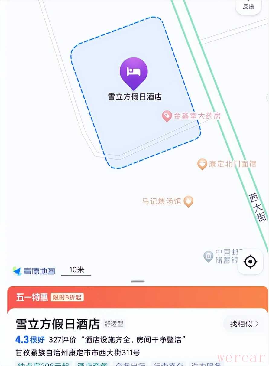 4)晚上7点过到康定市区,根据高德地图导航到《雪立方假日酒店》中充电(康定市区充电的地方很多,大家最好用高德地图搜索,星络充电等APP均没有),里面的工作人员很热情,里面有四台充电设备,八把枪,最大功率能到90kw,在这里补电200km,花费30分钟。原本就想在这个酒店,价格确实很高,一晚在1000左右,后在其他地方住的。