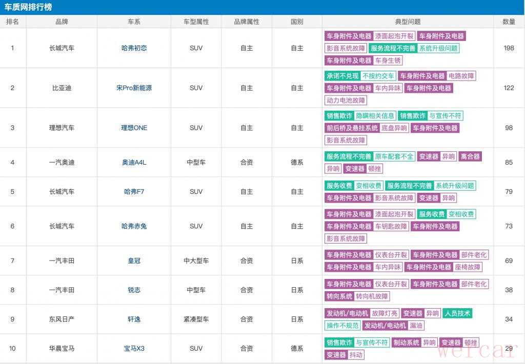 1. "央视点名:" 中央广播电视总台(央视)的《每周质量报告》栏目在近期节目中,曝光了部分哈弗品牌车型存在的质量问题。这并非针对单一车型或零部件,而是涉及到了多款车型和多个方面的问题。