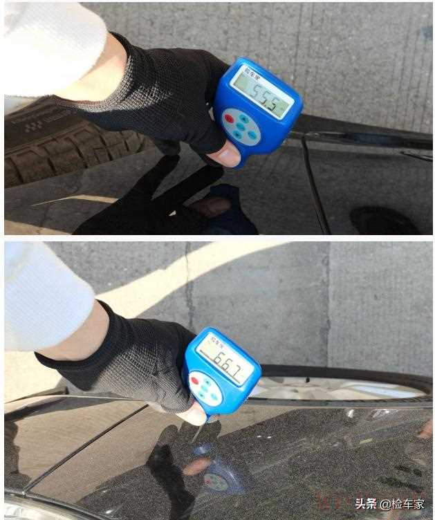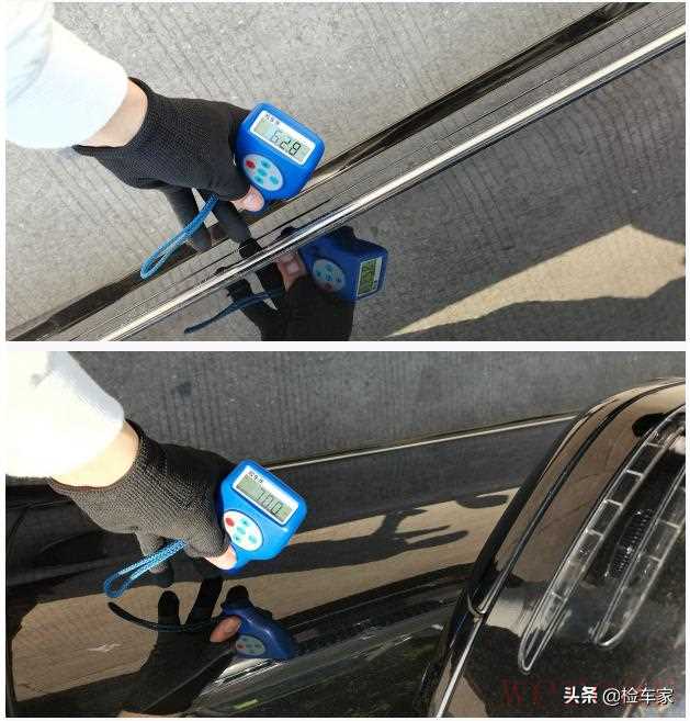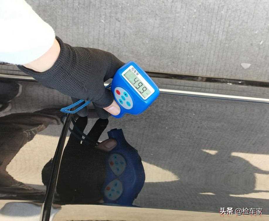 再看下半部分,靠近下侧门铰链附近有明显的腻子修复情况,长度超过8cm,实际的受损长度应该在15cm左右,漆面数值不算特别高,可惜的是已经超过了国标(400μm)。三杠我打算回头准备给两位大哥解说一下,却不想两个大脑袋就杵在身后,差点把三魂六魄都给吓飞了。