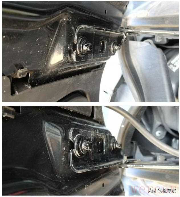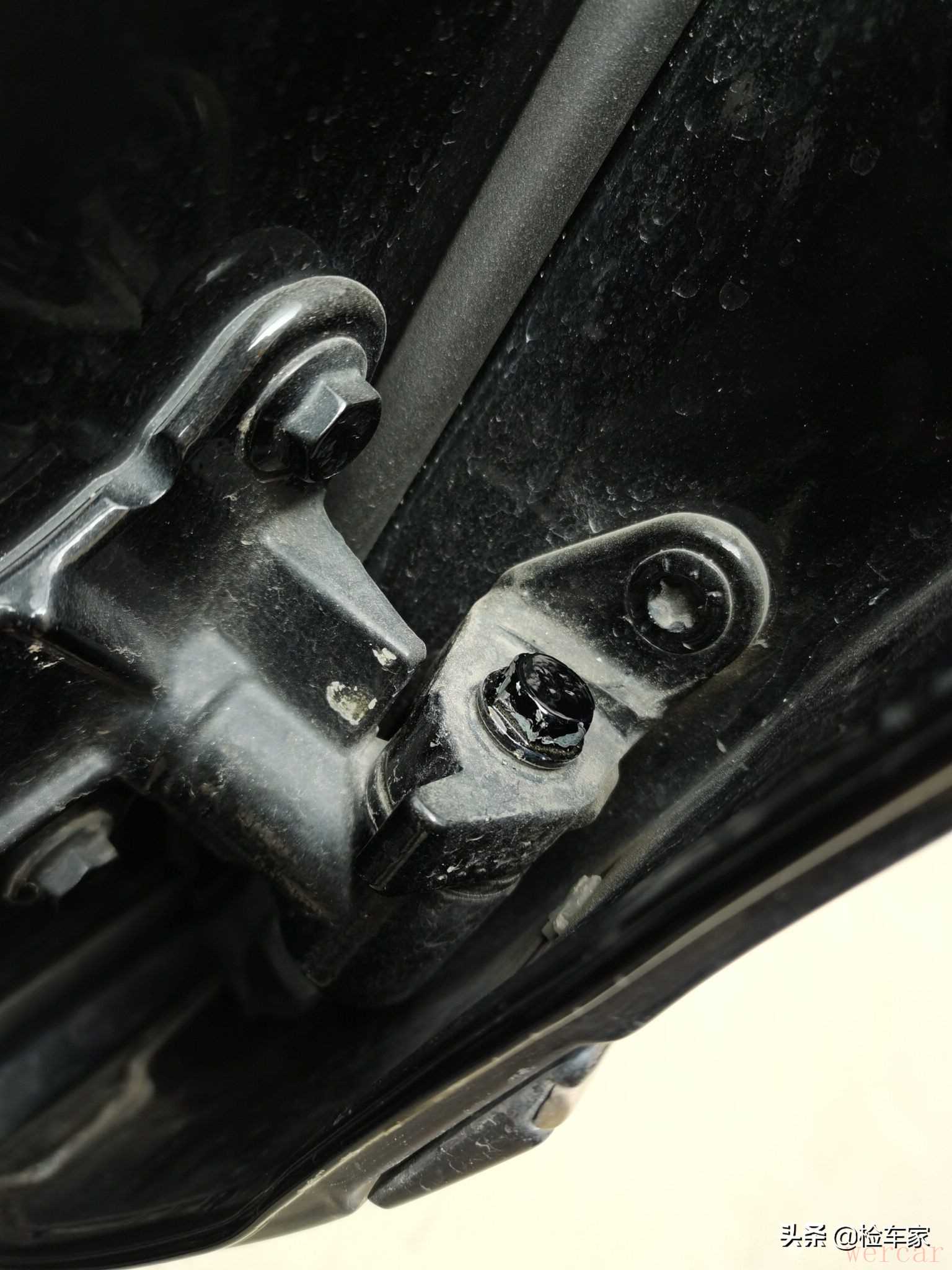 但这个翼子板的固定螺丝大家可以仔细看一下,没有任何的拧动痕迹,并且翼子板也没有明显的位移,可以推断是精修车,如果仅仅看螺丝估计大多数人都会掉坑里,所以我们验车不能仅凭一个东西就判定没问题,一定要带着批判性的眼光看问题,抱着验事故车的态度仔细推断。