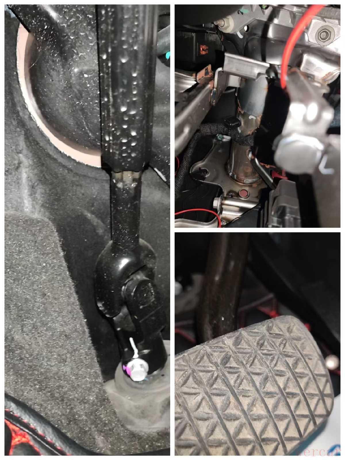 方向管柱,点烟器座没有生锈,地毯也没有发硬发霉的情况,扒开地毯看到地板还是比较干净的,综合推断车辆没有涉水泡水的情况。