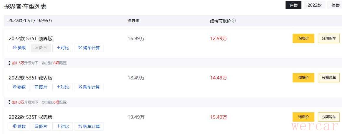 对于买家来说,他们购买二手车时,支付的金额主要是基于车辆的"使用价值"和"剩余价值",而不是包含高额购置税的新车价格。因此,从买家角度看,探界者作为一款主流中型SUV,其价值相对于包含高额购置税的新车价格来说,自然会有较大折让。
