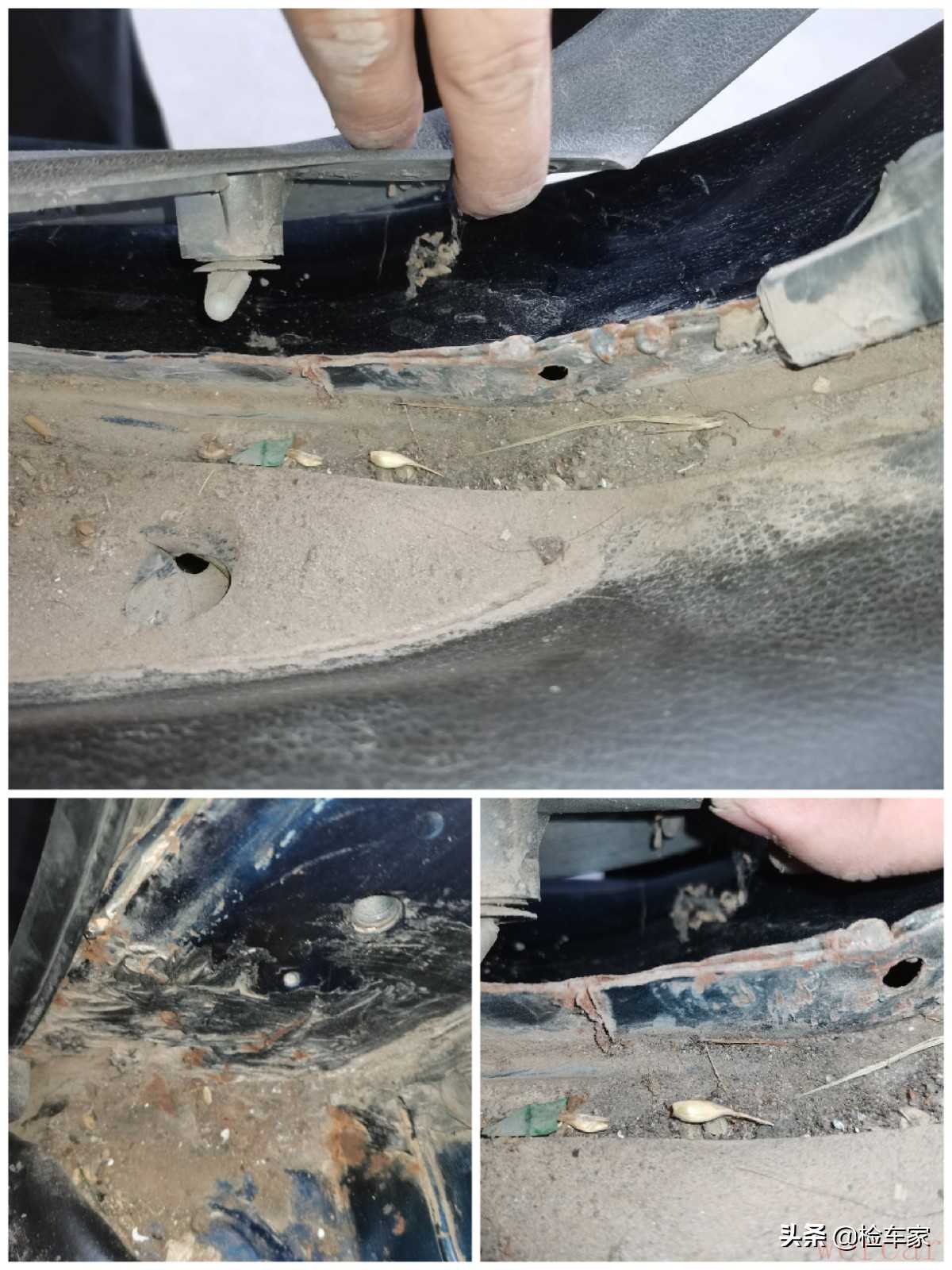 "扒开胶条看到猛烈撞击:" 这是非常关键的信息。轮胎和轮毂周围的胶条(通常是黑色或灰色的橡胶护胎条)是保护车辆侧裙和车身结构的。如果这里的胶条变形、破损严重,或者有明显的修复痕迹,往往暗示着车辆曾经发生过比较严重的侧面碰撞。这种撞击可能会对车身结构、悬挂系统、转向系统等造成不易察觉的损伤,即使看起来修复得不错。