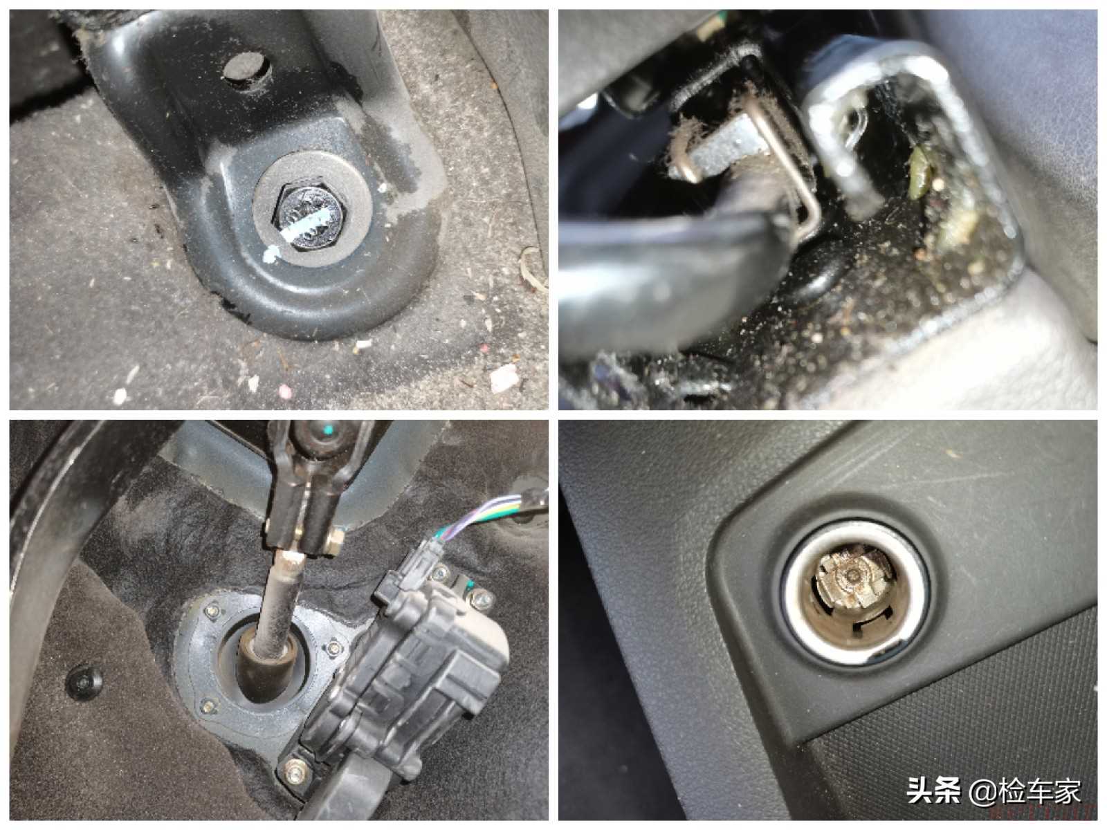 泡水项目的检测也比较顺利,车内没有霉味,方向盘管柱和座椅骨架及轨道均无生锈痕迹,固定螺丝无拆卸。全车安全带没有拆卸更换,拉扯无异常,表面没有发霉,卡槽内没有不好清理的泥沙残留。再综合点烟器、保险盒等金属部件的情况,我们可以排除车辆涉水泡水的嫌疑。