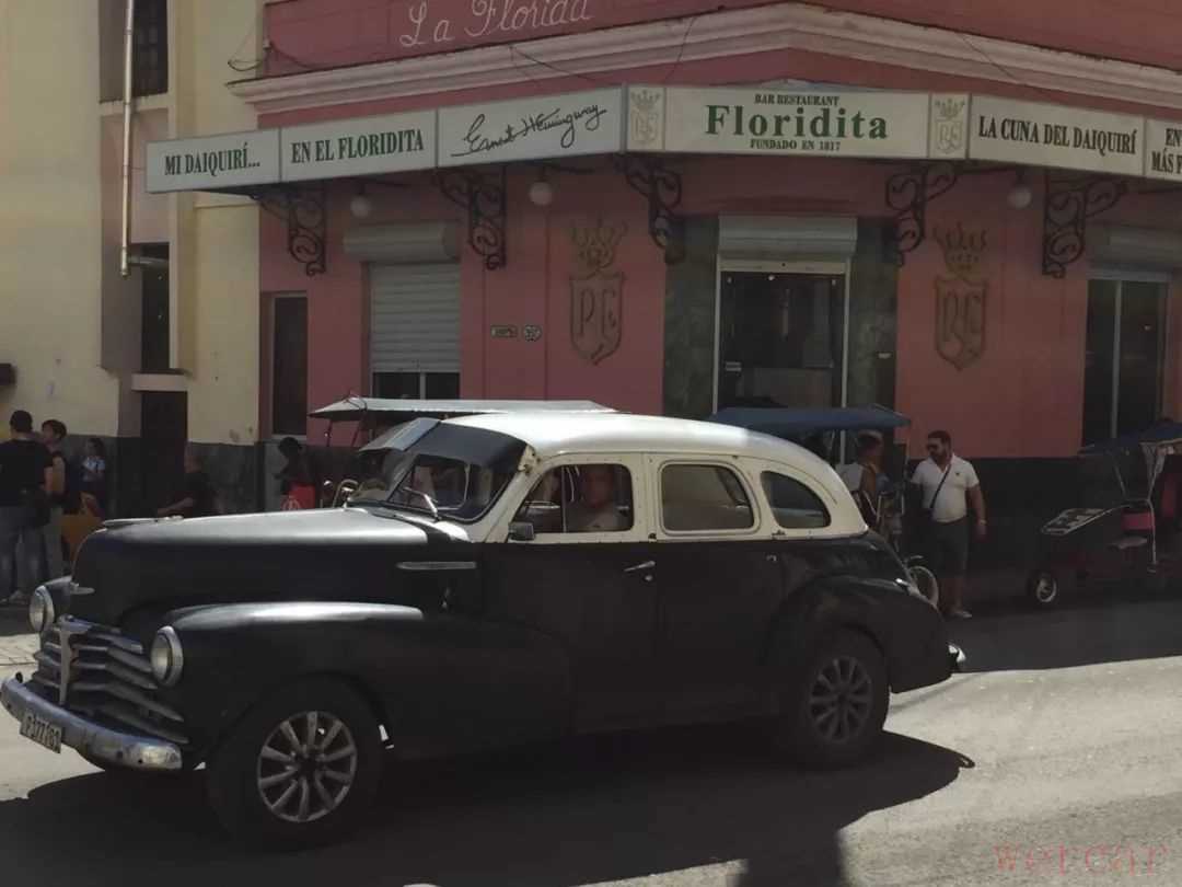 老爷车驶过海明威小佛罗里达酒馆。海明威曾说,最好的Daiquiri鸡尾酒在这里。