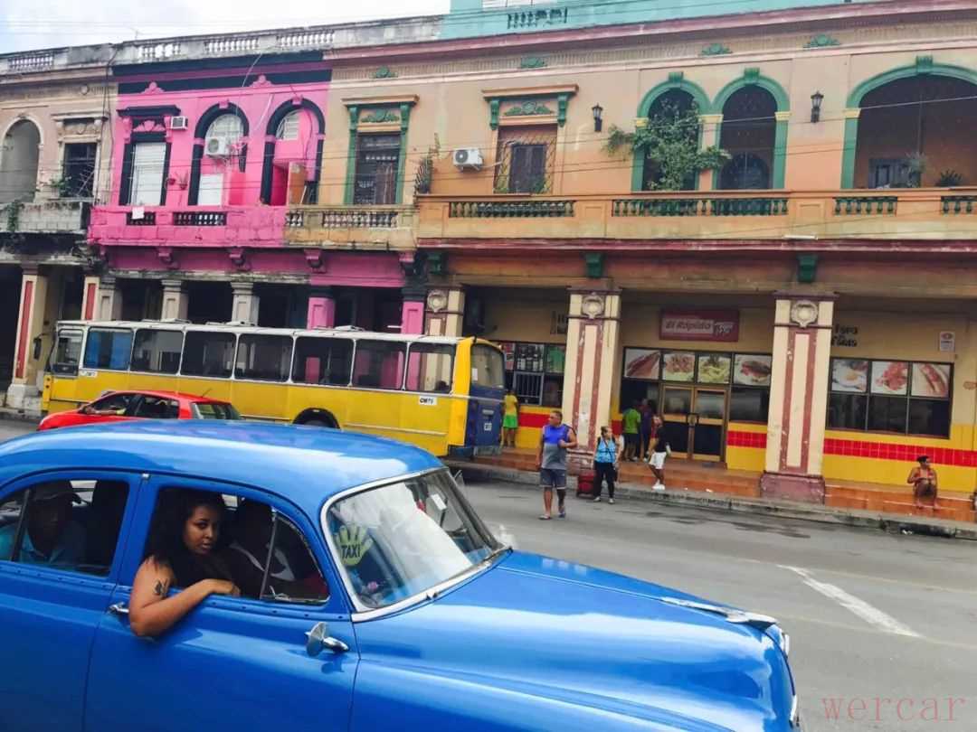 哈瓦那街景,老爷车和色彩斑斓的破败民宅