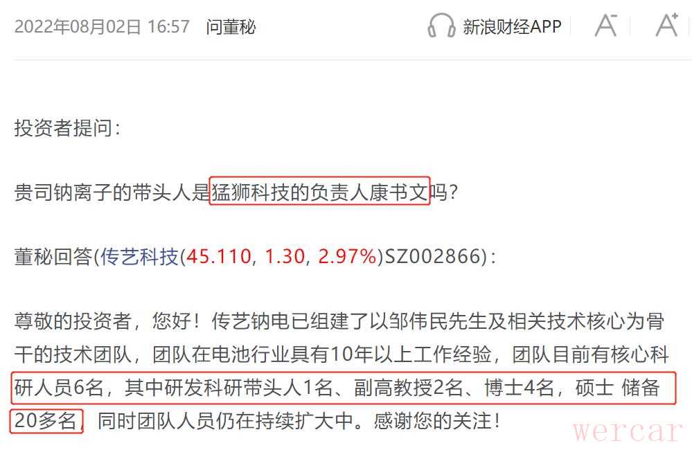 公司6月24日披露的一份投资者关系活动记录表披露,将通过全资子公司江苏智纬电子与宁波海盈汇鑫有限合伙企业及自然人杨磊、杨崇义,共同江苏传艺钠电科技有限公司,注册资本3000万元。"公司注册资本是3000万元,做钠电池的投资远远不止这一个体量,我们上市公司现在已经准备好了350亩的土地,已经建好厂房12万平米,在建的厂房大概18万平米,而且上市公司准备了充足的资金来做一期项目投入"。