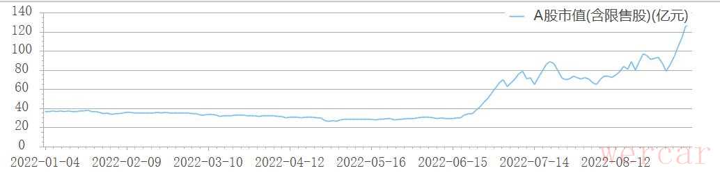 市值从6月23日的不足38亿元涨至9月8日的127亿元,不到3个月的时间市值暴增近90亿元。