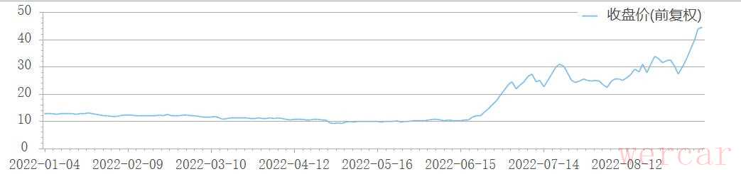 从6月23日至今,公司收盘价13.17元/股涨至9月8日的44.30元/股,涨幅高达235%。