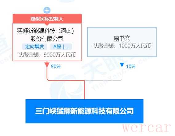天眼查显示,康书文持有三门峡猛狮新能源科技有限公司10%的股份,而这家公司正是猛狮科技的控股子公司。猛狮科技是一家家族企业,实控人为陈乐伍和他的父亲陈再喜、母亲陈银卿。