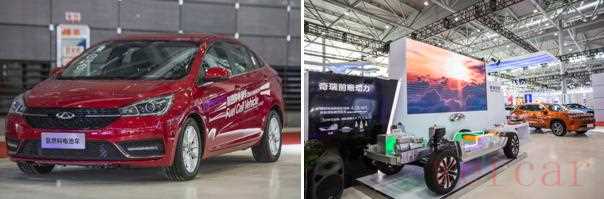图为奇瑞第三代氢燃料电池汽车、氢燃料电池车原理模型