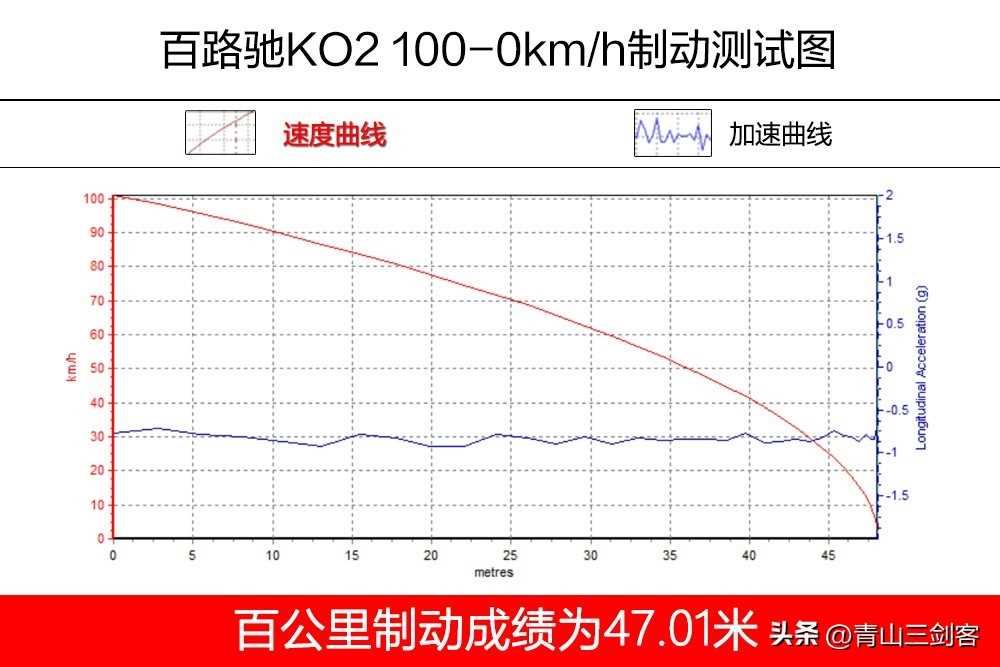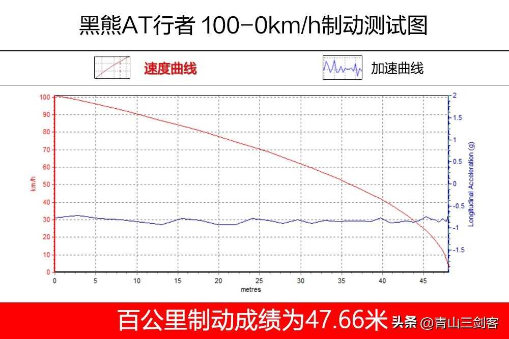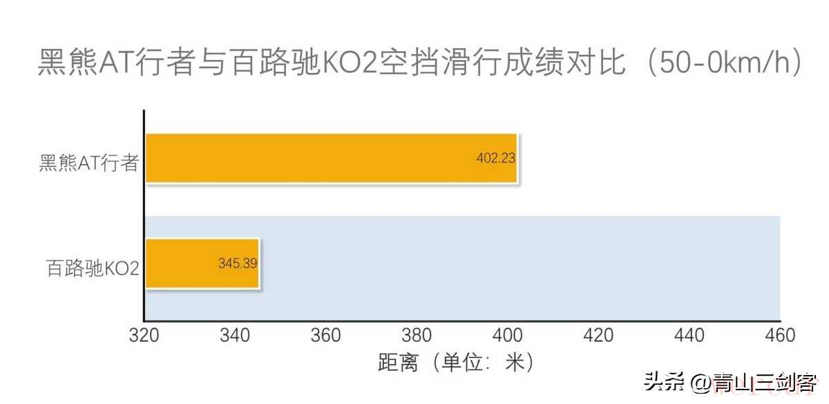 实测百路驰KO2百公里制动距离为47.01米,而黑熊AT2行者的百公里制动距离为47.66米。