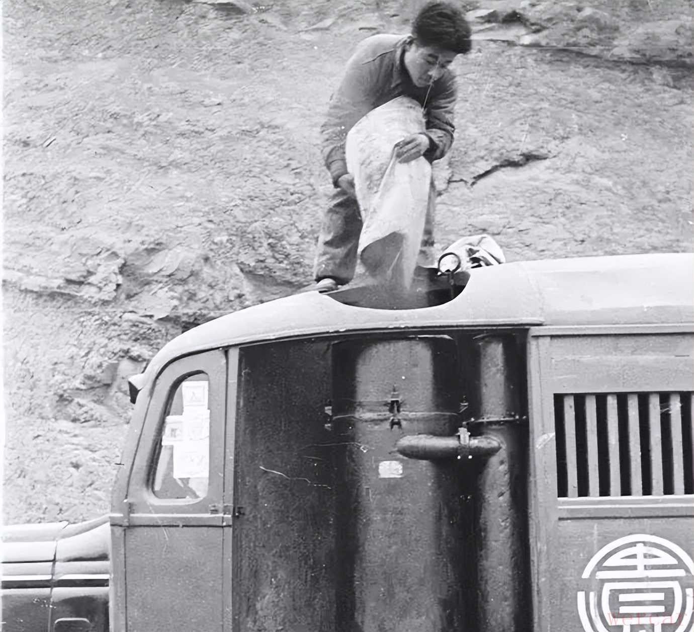开一段停一段,司机下来给驾驶舱旁边的炉子加炭、续水、掏炉灰。-----这说的就是木炭汽车
