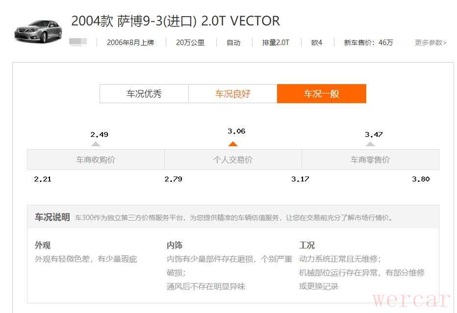按照评估标准来说,这台萨博93也就是刚刚及格的标准,再加上年限已经这么沧桑了,就算前不久取消了一年两审算是对老车的利好,车商的收车价也不可能超过2.5万,但即便如此现在依然有个人车主和车商在打着情怀的幌子高价兜售这个悲情品牌。可是各位情怀玩家请注意,抛开价格方面的因素,如果你真的坚定意念打算入手萨博旗下的车型,一定要先打听清楚你所在的城市有没有萨博专修或者懂萨博的老玩家带你入坑。