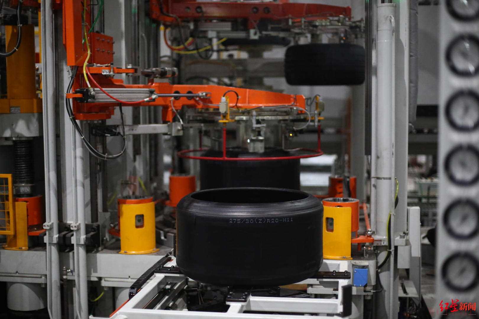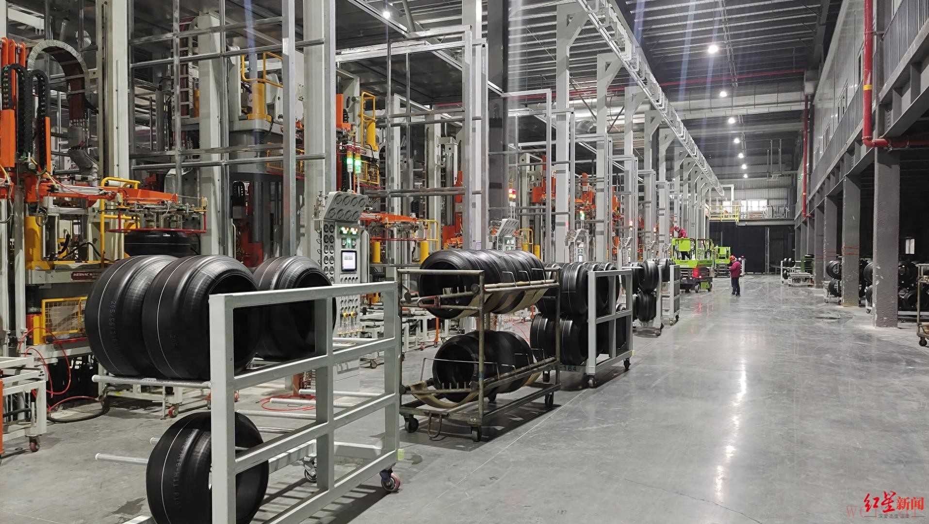 “这是子午线轮胎一次法成型机,具有精度高、效率高、稳定性好等优点。”2月9日,在四川远星橡胶有限责任公司(以下简称“远星橡胶”)二期项目现场,项目负责人崔友明向红星新闻记者介绍起车间里的全新设备。节后复工以来,远星橡胶一边调试设备,一边忙生产赶订单,目前公司日产各类轮胎约20万条。