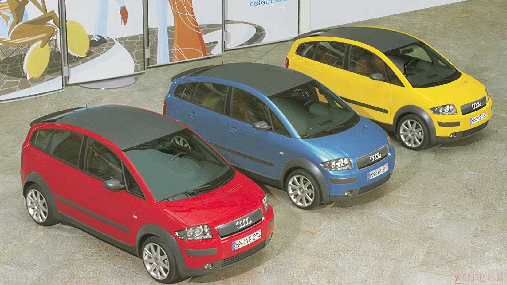 1997年法兰克福车展,奥迪A2概念车首次亮相。两年后,这台车量产上市,定位在A3与A4之间,拥有独特的五门造型和略显“泡状”的车身线条,看起来像一台微缩版旅行车,又像一台被未来感包裹的小型MPV。那时人们对它的评价是“既不是车,也不是厢式车”,但在今天看来,A2其实是奥迪最早探索紧凑空间效率与轻量化科技结合的尝试。