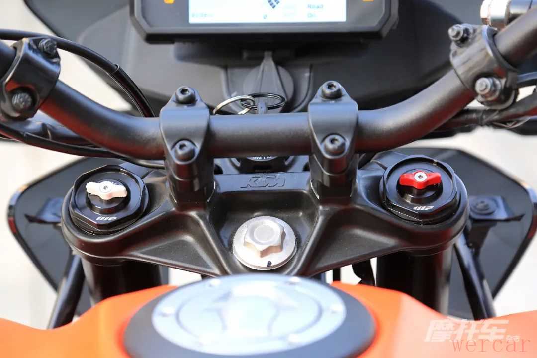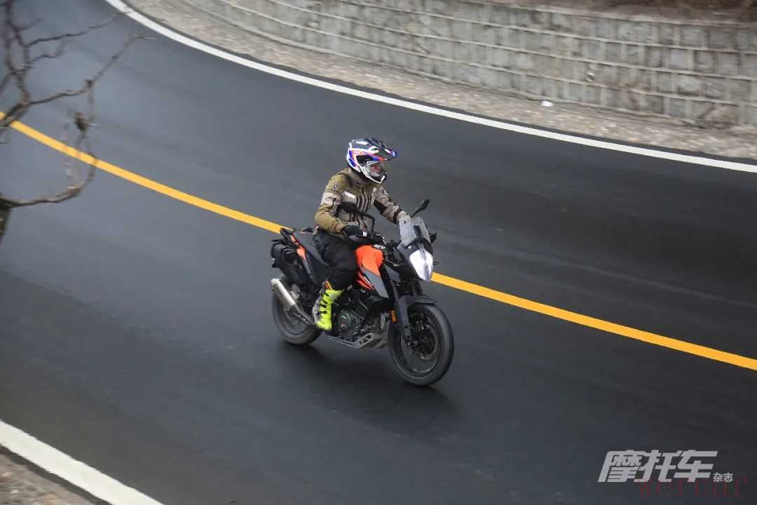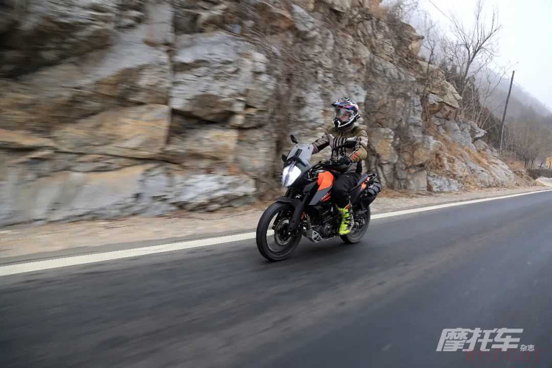 在高速骑行时,这台车终于不再憋屈,也不再像在城区里那样感觉变速箱的6挡设置多余了,发动机可以尽情的释放动力,高速超车也很是轻松。至于震动抑制,这显然不是KTM的强项,不过对骑惯了单缸车的笔者来说完全可以接受。