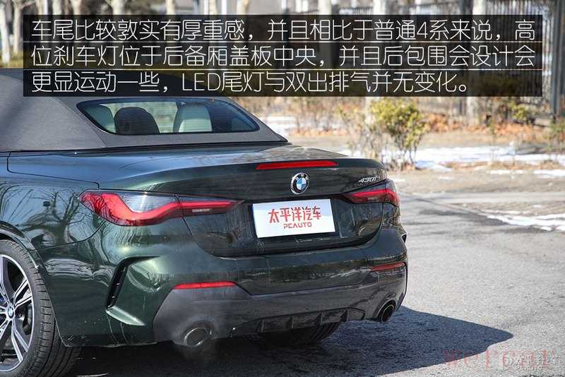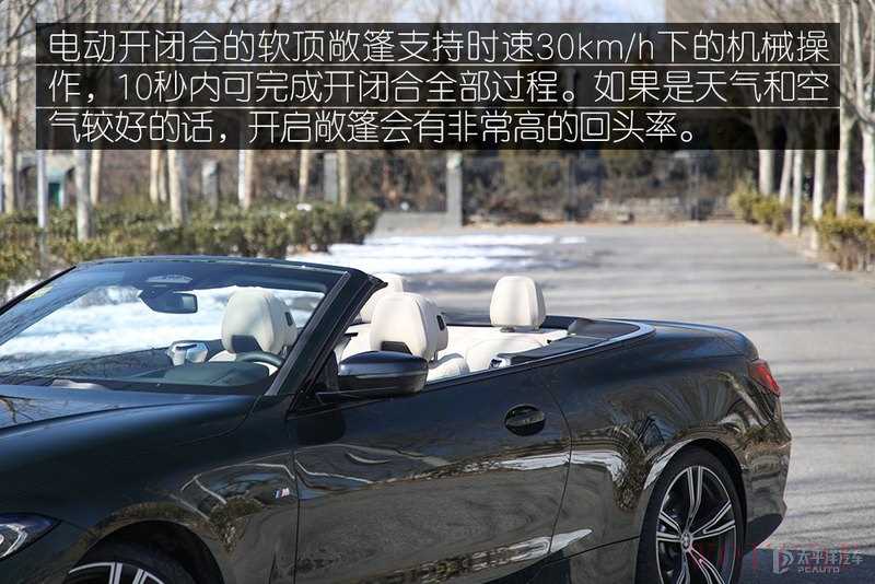 编辑总结:对于宝马4系敞篷版来说,首先必要要承认它的受众一定是小众的,可能未来的销量更多的是在南方温暖的城市会有很多它的身影,但对于这台车来说,无疑是一台好车,因为它具备了一台敞篷轿跑车型被年轻人喜欢的所有元素,除了性能表现优异之外,我相信它的无框车窗和敞篷是最惹人喜爱的地方了。而针对价格来说,官方54.78万元的售价会稍比高功奥迪A5敞篷版便宜一些,还是具备一定的价格优势的,如果你喜欢后驱敞篷轿跑的话,那么这台宝马4系应该完全可以满足你驾驶与精神上的双重需求了。(图/文/摄:太平洋汽车网 张岩)