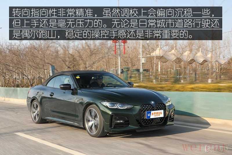 4. "(可能的)操控感受:" 虽然重量增加,但4系通常被认为底盘调校和操控性在敞篷版中依然保持得不错。