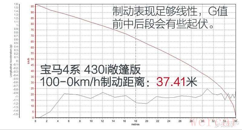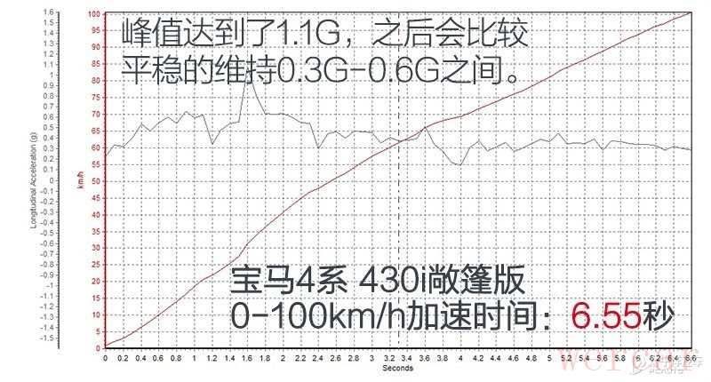 加速测试采用常规的弹射起步模式,并且将车调整至运动模式且关闭车身稳定系统,起步转速控制在2000rpm时释放制动踏板,并全力踩下油门踏板,由于后驱车的特质,后轮会有少许的打滑现象,但抬头抑制的比较好,整体姿态保持非常稳健,最终的6.55秒破百的实测成绩,和官方数据比较吻合。
