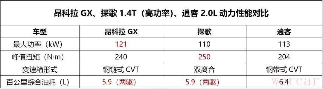 大众探歌的280TSI(1.4T高功率)版本实力不可小觑。虽然其动力储备和技术储备稍弱于昂科拉GX,但得益于双离合变速箱的高效传动,依然可以带来不弱的动力性能,并且将油耗控制在更低的水平。