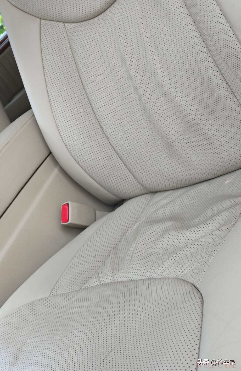 从我们查到的维保记录能证明,车主是全程在4S店做的维保,资料太长我们就只截取了一部分!公里数是完整记录下来了的,没有假!不得不服吧!那么主驾座椅的磨损就很可能是长久的老化,还有一个重要的点,车主人高马大,起码有180斤吧!