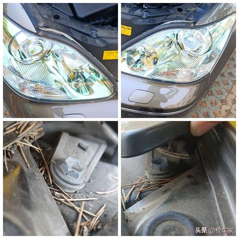两边大灯都开始发黄了,说明使用年份很久了,固定螺丝有拧动痕迹,但只是逆时针顺序的紧固痕迹,并没有顺时针的松动痕迹!不排除换过螺丝,所以大灯是个疑问!不过大灯属于易碎品,轻微的挤压就能造成灯壳破裂损坏,所以更换大灯也不算什么大问题!