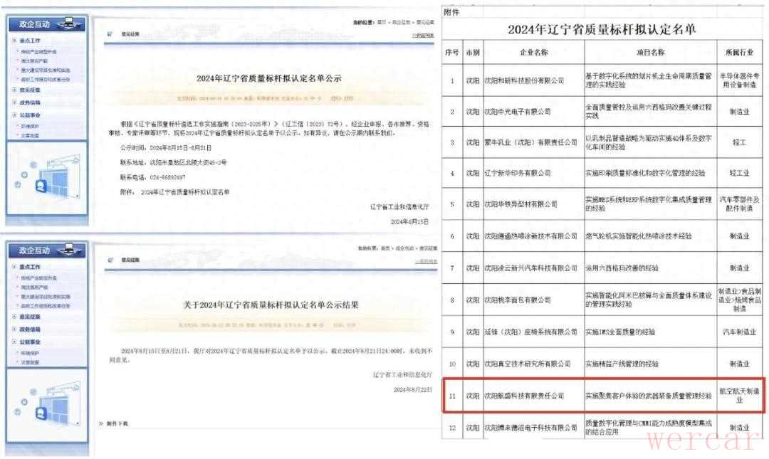 近日,辽宁省工业和信息化厅公布2024年辽宁省质量标杆企业评选结果,沈阳航盛科技有限责任公司(简称沈阳航盛)“实施聚焦客户体验的武器装备质量管理经验”在激烈竞争中脱颖而出,荣获“辽宁省质量标杆”荣誉称号。
