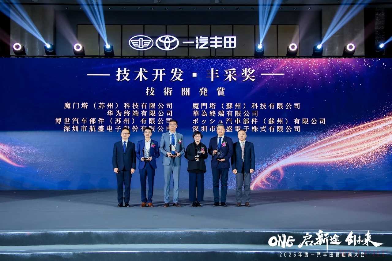 3月31日,在一汽丰田2025年度供应商大会上,航盛凭借全年部品纳入不良0 PPM的良好表现与座舱系列产品卓越的创新成就,在540余家供应商中脱颖而出,荣获一汽丰田“品质进取·丰范奖”和“技术开发·丰采奖”两项殊荣。其中,“技术开发·丰采奖”是一汽丰田首次设立的,用以表彰在新技术领域有突破性进展,提升一汽丰田竞争力的供应商。